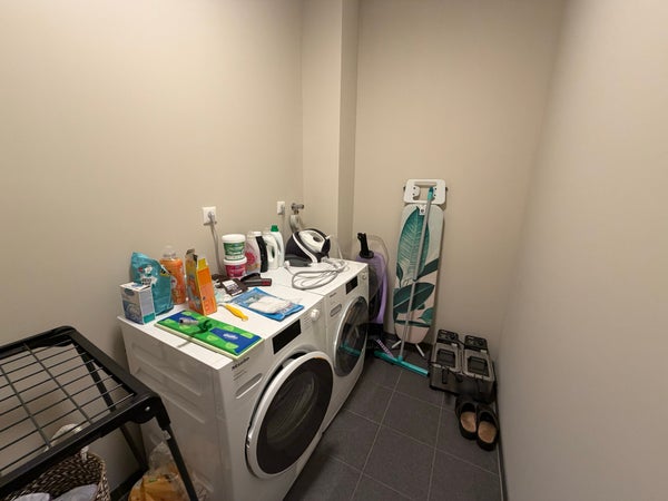 De keuken is volledig uitgerust met vaatwasser, oven, koelkast, diepvries & afzuiging. Ook is er een wasmachine & droger aanwezig in de woning.