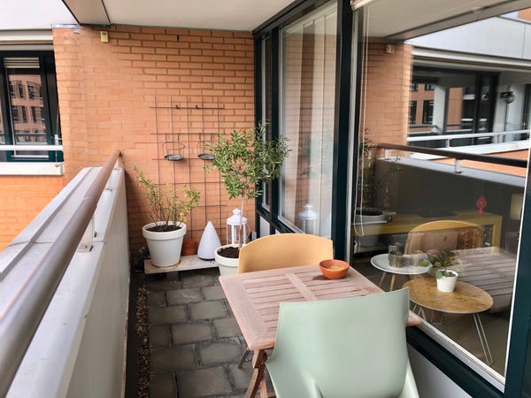 Vanuit de woonkamer is het dakterras met uitzicht op de prachtige binnentuin.