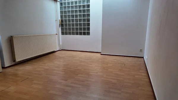 Appartement gelegen op de begane grond. Het appartement bestaat uit een woonkamer met open keuken, badkamer met douche, toilet en wastafel en twee separate kleine slaapkamers (7 en 10m²). Er is tevens een gemeenschappelijke fietsenberging aanwezig. Geschikt één persoon of een koppel.