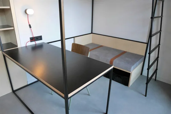 Luxe gemeubileerde studio in het moderne campuscomplex 'Wauwhaus'. De studio is uitgerust met een tweepersoonsbed (140x210cm), moderne en-suite badkamer, luxe open keuken (incl. inbouwapparatuur), royale kleding- & opbergkast, bureau met stoel, lounge sofa en high-speed internet. De studio is gelegen op de begane grond (zuidzijde). Zie plattegrond voor de exacte ligging in het complex.