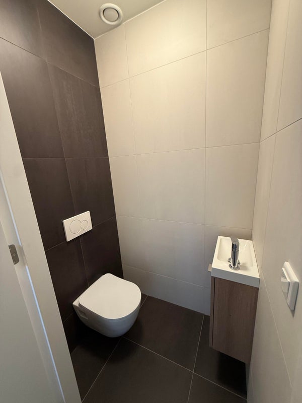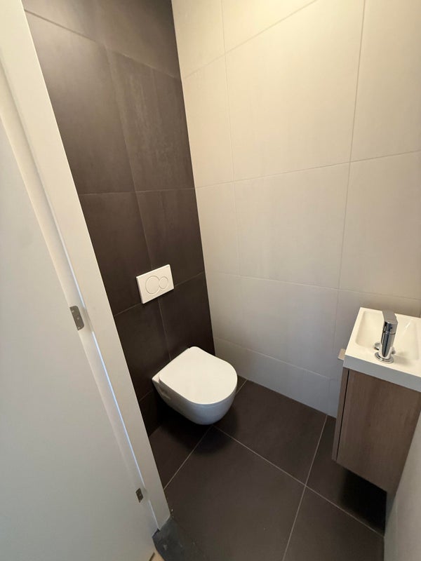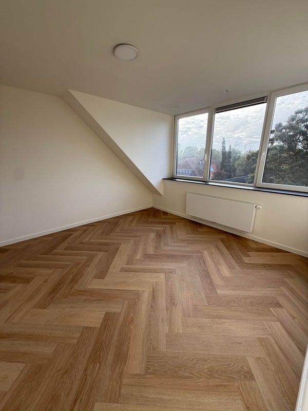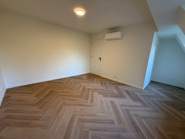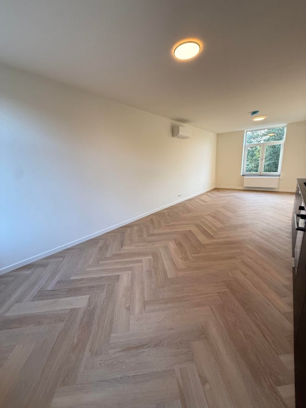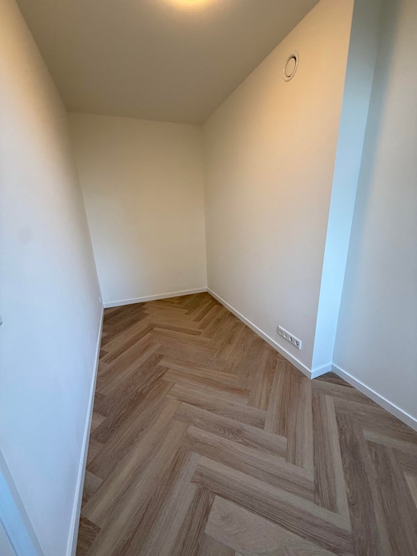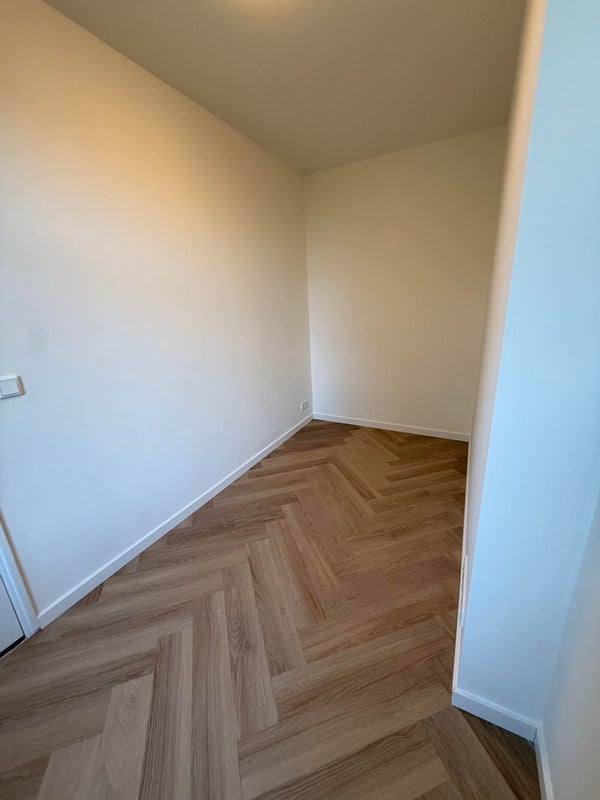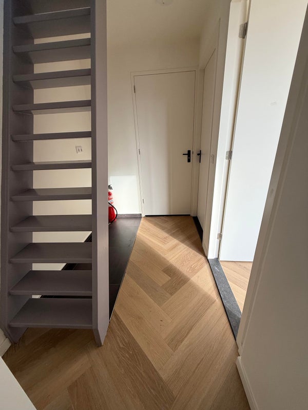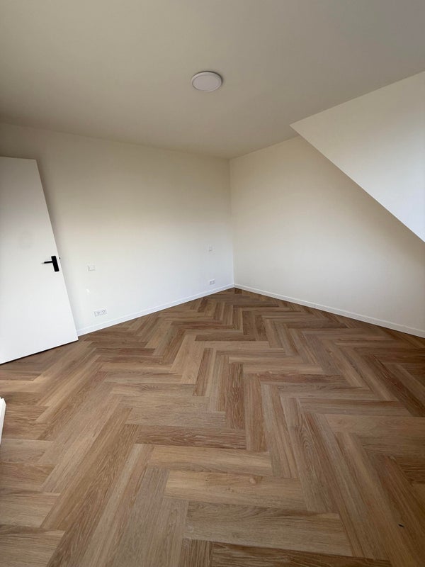 Door het hele appartement ligt een onderhoudsvriendelijke pvc-visgraat vloer, wat zorgt voor een strakke en moderne afwerking.