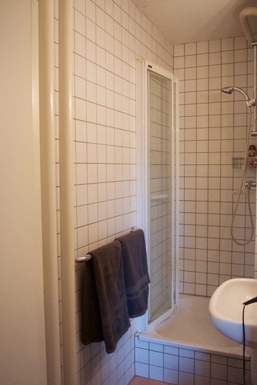 Sanitair: moderne badkamer met douchecabine en wastafelmeubel (2 m2) Apart toilet