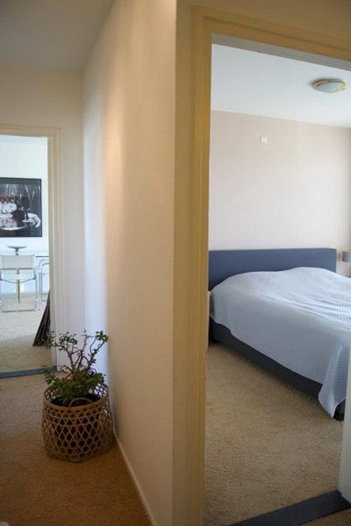 De slaapkamer is ruim van opzet: deze is opengebroken teneinde meer ruimte te creëren.