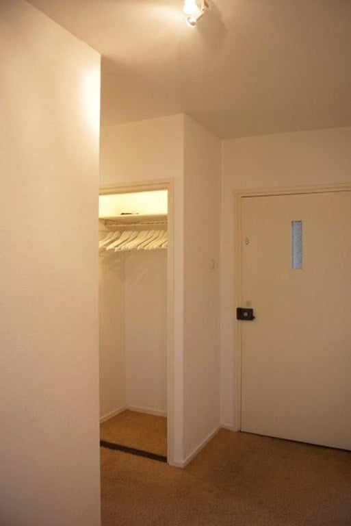 Tweede verdieping: hal met garderobe-nis, toegang tot slaapkamer, badkamer, toilet, keuken en woonkamer. In de hal is tevens een muurkast ingebouwd.