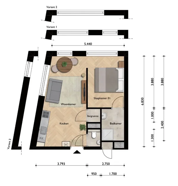 Het gestoffeerde appartement bestaat uit een lichte woonkamer met open keuken met inductie kookplaat, koelkast met vriesvak, afzuigkap en comi-oven, separaat toilet, badkamer met douche en wastafel en vitrage. Dankzij de goede isolatie en vloerverwarming is het binnen altijd comfortabel.