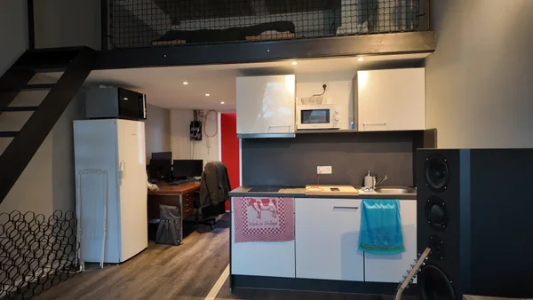 Luxe studio in het campuscomplex 'Think Tank'. De studio ligt op de eerste etage en heeft een ruime woonkamer met open keuken (incl. apparatuur), badkamer met wastafel, douche en toilet en op de vide is een slaapkamer. Op de begane grond liggen een gemeenschappelijke ontmoetingsruimte, fietsenberging en wasruimte.