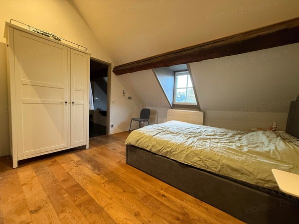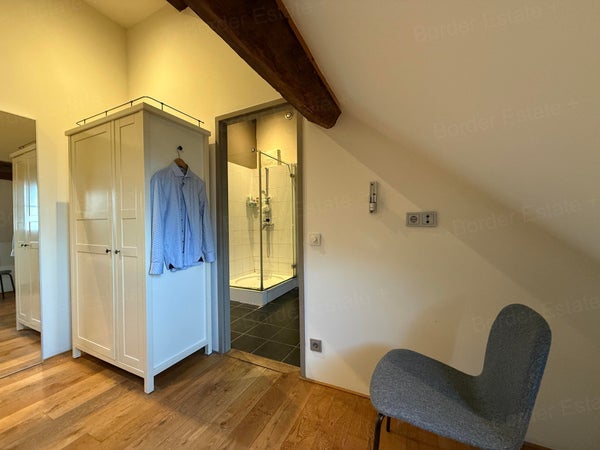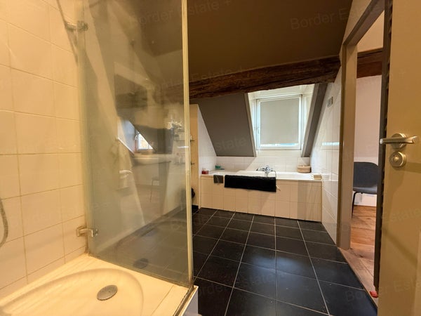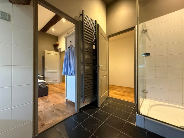 Het appartement beschikt over een comfortabele slaapkamer met ensuite badkamer, voorzien van zowel een douche als een ligbad, wat zorgt voor extra luxe en comfort.