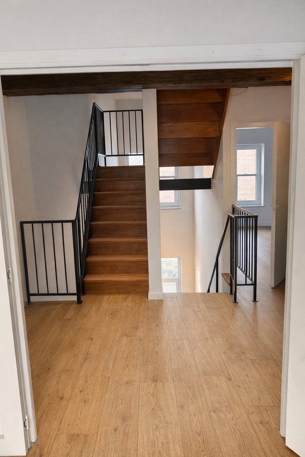 Via het open vide-trappenhuis bereikt u de derde verdieping, waar zich twee volwaardige slaapkamers bevinden met daartussen een riante badkamer.
