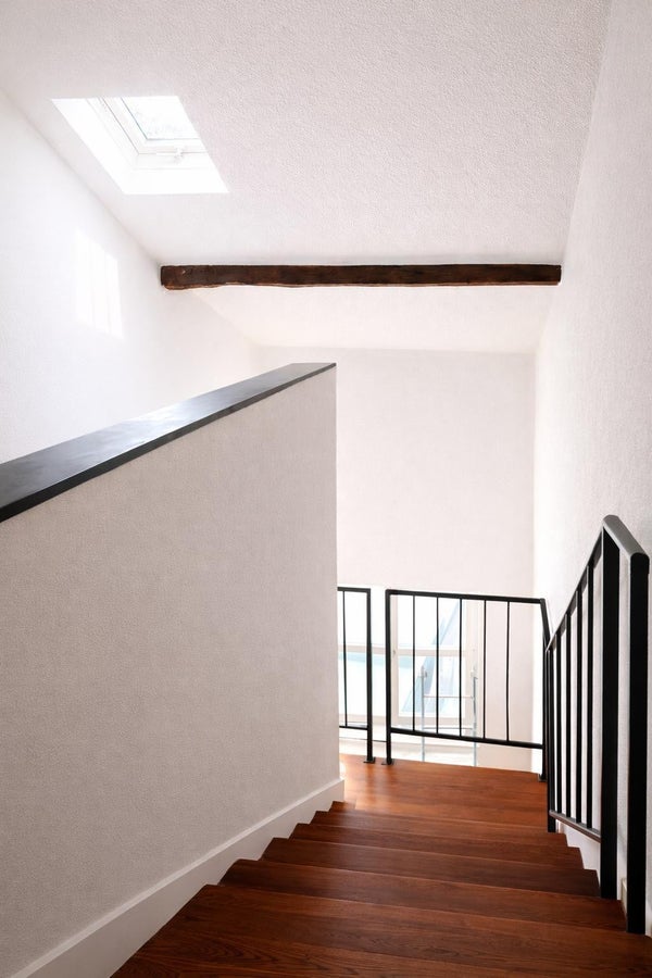 Op de begane grond is een fietsenstalling aanwezig, praktisch en fraai weggewerkt onder de trap.
