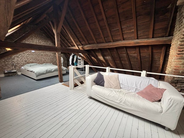 - Via een trap bereik je de ruime vide, waar zich de slaapkamer bevindt