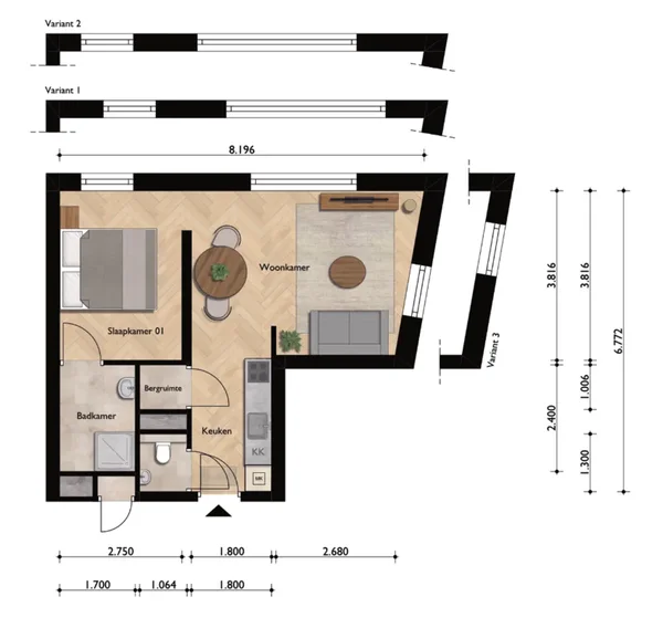 Het gestoffeerde appartement bestaat uit een lichte woonkamer met open keuken met inductie kookplaat, koelkast met vriesvak, afzuigkap en comi-oven, separaat toilet, badkamer met douche en wastafel en vitrage. Dankzij de goede isolatie en vloerverwarming is het binnen altijd comfortabel.