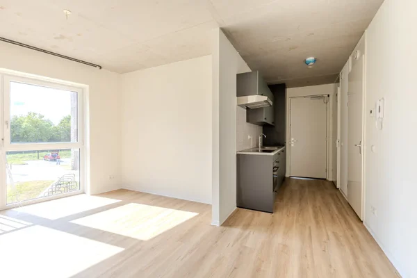 Dit gestoffeerde appartement -exclusief voor jongeren tussen de 18 en 28 jaar- is voorzien van alle gemakken en luxe. Het appartement bestaat uit een lichte woonkamer met open keuken (incl. inbouwapparatuur), slaapkamer, separaat toilet en een moderne badkamer. Op de begane grond vind je diverse gedeelde faciliteiten, zoals een gezamenlijke ruimte, een Miele-wasserette, een fietsenstalling, een grote binnentuin en toegang tot de lift.