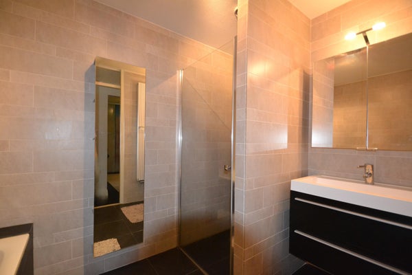 Terug in de hal treft u de 'master' slaapkamer (15m²) en de moderne, geheel betegelde badkamer (6m²) v.v. een ligbad, een inloopdouche en een wastafel met meubel. Het toilet is separaat.