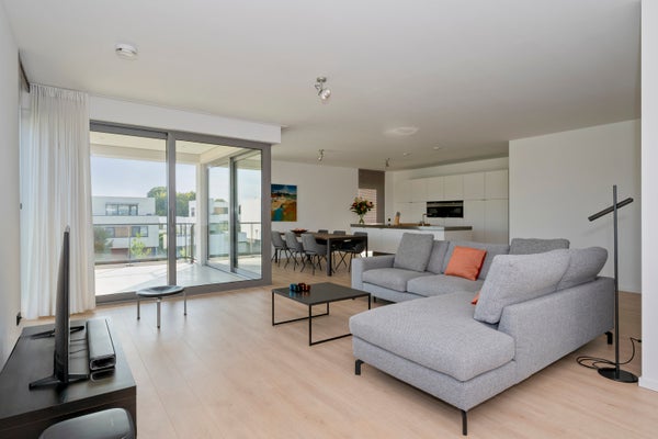 - Ruime woon/-eetkamer (ca. 48 m²) met open keuken en schuifpui naar het balkon;