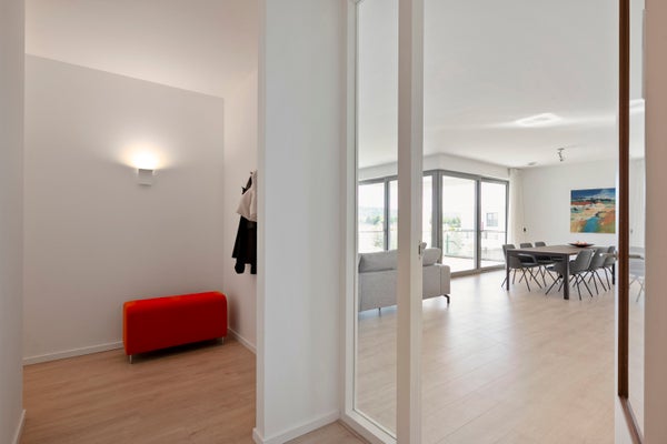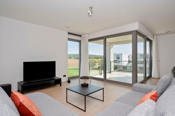 Het appartement ligt in een open, kindvriendelijke en landelijke omgeving met een vrij uitzicht.