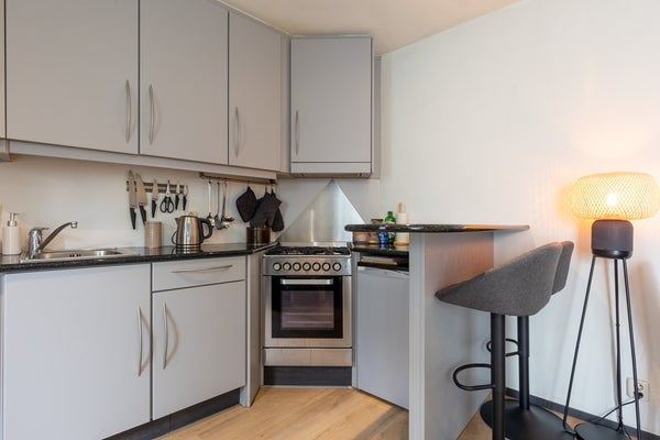 Achter de trap is dit appartement bereikbaar via een eigen voordeur.