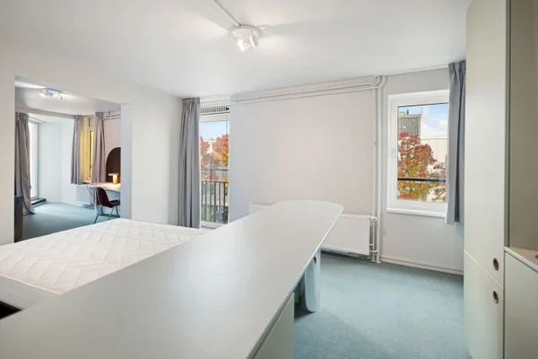 Behoefte aan meer comfort en luxe? De volledig ingerichte ‘Corner-Ed’ woning in het gemoderniseerde campuscomplex The Ed beschikt over een tweepersoonsbed (140x200) inclusief matras, luxe open keuken (met inbouwapparatuur), badkamer met toilet, douche en wastafel, bureau met stoel, voldoende opberg- en kledingkasten, sofa met bijzettafel en high-speed internet. De woning bevindt zich op de 4e verdieping (noordzijde).