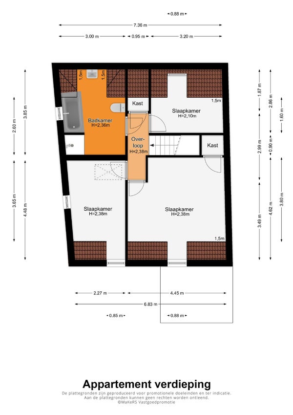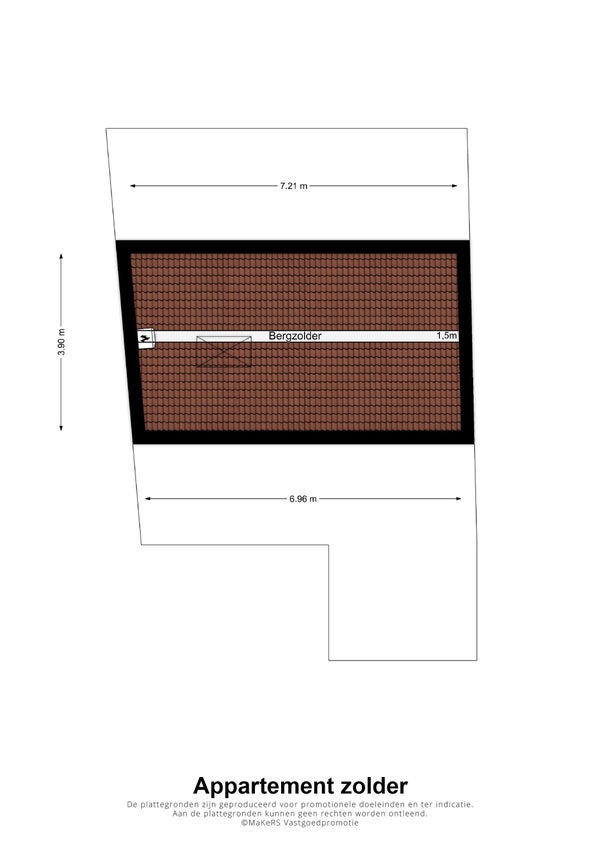 3e Verdieping: via vlizotrap te bereiken zolder van 22 m².
