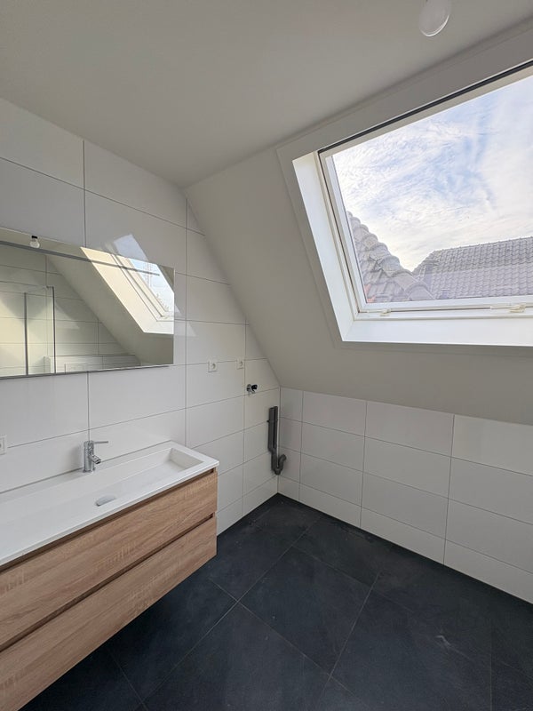 Verder heeft de woning een nieuw afgewerkte badkamer die voorzien is van alle gemakken. Zo heeft deze badkamer een volledig afgescheiden douch, een wastafel, aansluiting voor een wasmachine en een toilet.