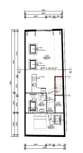 Het appartement is gelegen op de tweede etage van het pand en is ca 60 m2 groot. In het pand bevinden zich meerdere nieuwbouw appartementen die dit jaar in de verhuur zijn gekomen.