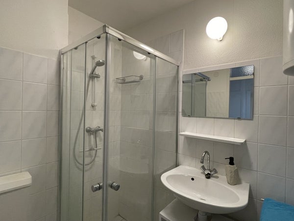 De badkamer is voorzien van een douche, wastafel, toilet en een aansluiting voor de wasmachine. In de hal is een handige bergkast van bijna 2 m².
