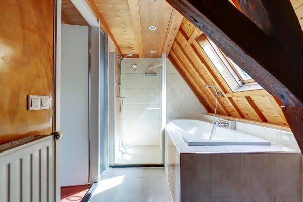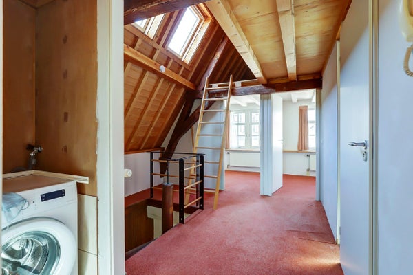 De badkamer is compleet en voorzien van een ligbad, ideaal om tot rust te komen na een lange dag. Een absoluut pluspunt van deze woning is het royale dakterras: een heerlijke buitenruimte midden in de stad, perfect om te ontspannen, te eten of van de zon te genieten.