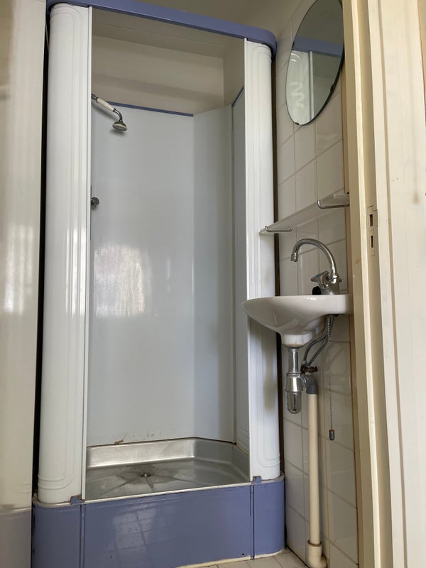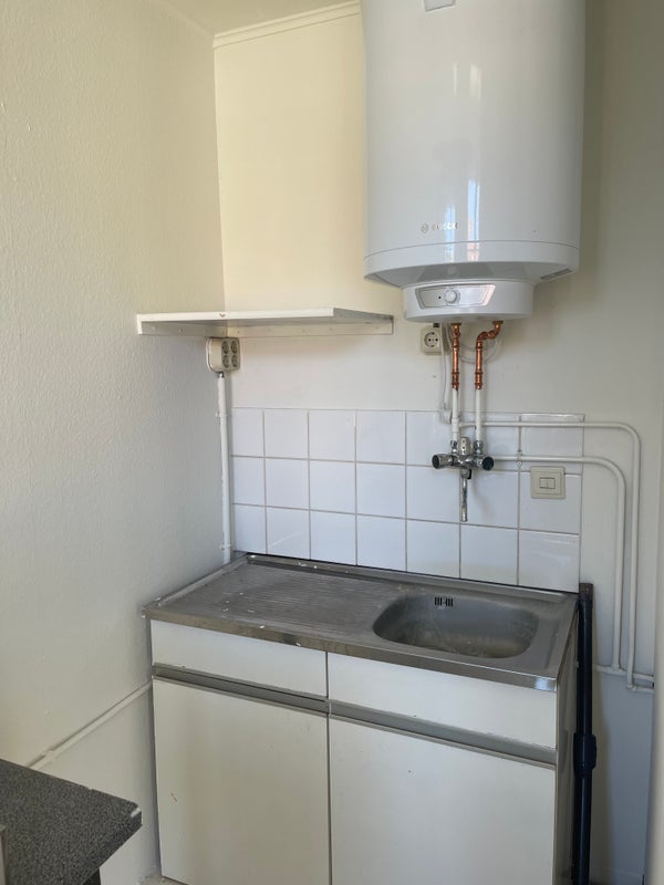 De ruime doorzon gevulde studio is op te delen in twee stukken, namelijk een woongedeelte en een slaapgedeelte. Deze ruimtes kunnen middels een vouwdeur van elkaar worden afgesloten. Aan de achterzijde van de studio treft u, in de hoek, een eenvoudige keukenopstelling met kookfornuis en wasbak aan.