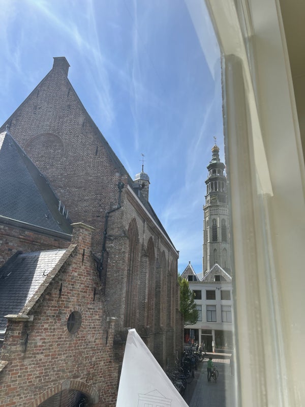 De studio is gelegen in een zijstraat van de gezellige winkelstraten Lange- en Korte Delft, echter ervaart u hier echt rust én prachtig uitzicht op diverse monumentale panden.