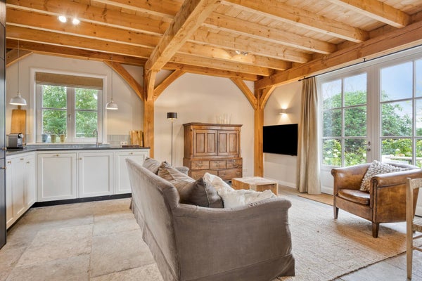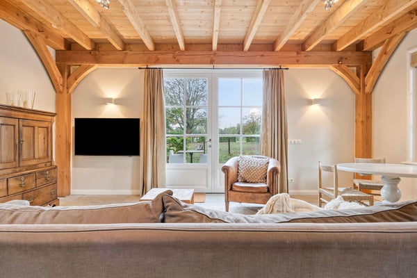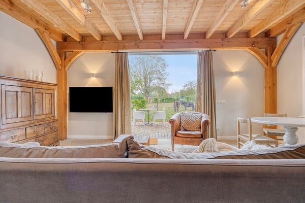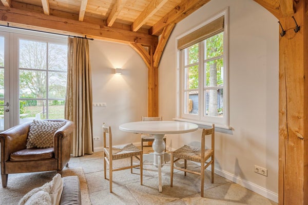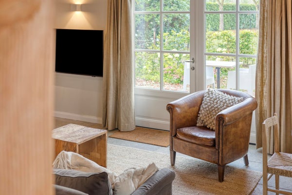 Aansluitend bevindt zich een gezellig woongedeelte met toegang tot het eigen terras, waar je kunt genieten van het vrije uitzicht over de bosrijke omgeving – de ideale plek om tot rust te komen.