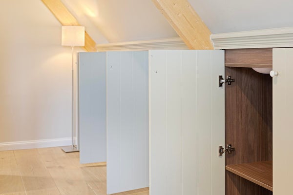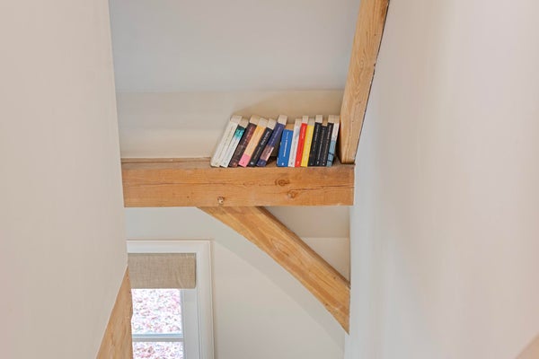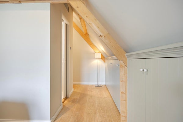 Via de trap kom je op de eerste verdieping. Hier is de ruimte praktisch ingedeeld met een handige kastenwand, een comfortabel bed met ook hier geïntegreerde arico.