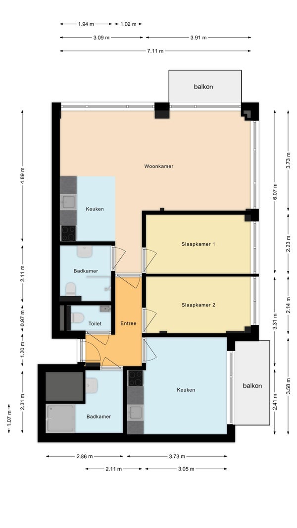 - Let op woningdelers: afsluitbare kamers, elk met eigen keuken, badkamer en balkon