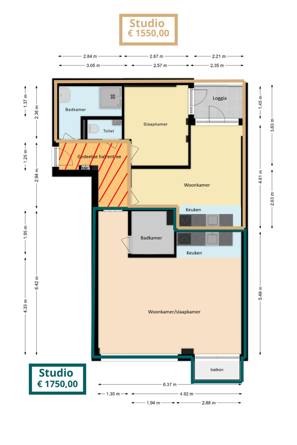 - Let op woningdelers: afsluitbare kamers, elk met eigen keuken, badkamer en balkon