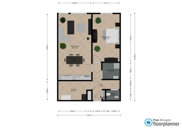 De royale slaapkamer boven en de studio, 2e slaapkamer, hebben beide een mooie oppervlakte van ca.20 m²