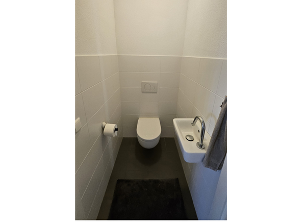 - (Deels) betegelde toiletruimte met toilet en fonteintje;