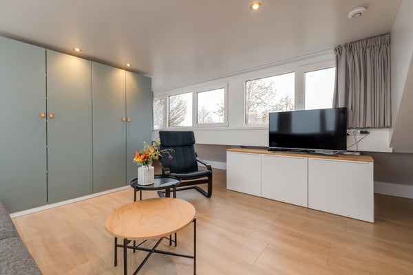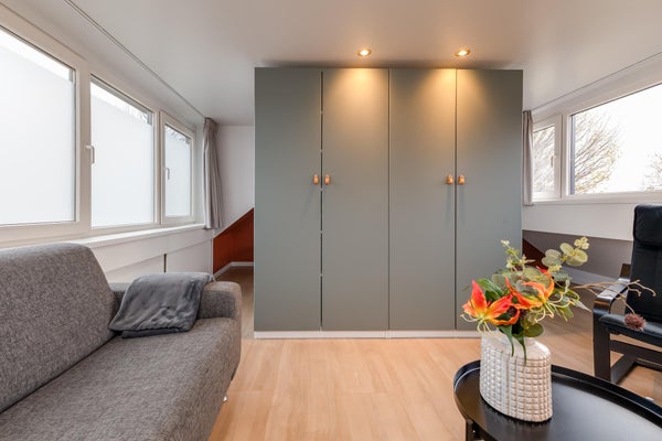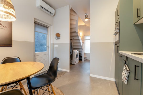 Dit fraaie appartement is met zorg en stijl ingericht en van werkelijk alle gemakken voorzien. Op de begane grond vind je de moderne badkamer en keuken, terwijl de bovenverdieping ruimte biedt aan een gezellige woon-slaapkamer. Alles is aanwezig voor een comfortabele start; je hoeft alleen je koffers mee te nemen.