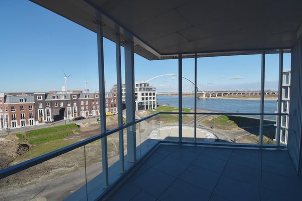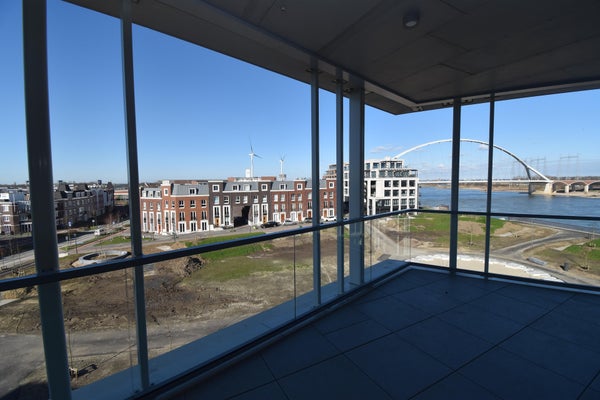 Dit fraaie 4-kamerappartement van 115 m2 op nummer 27 heeft een panoramisch uitzicht over de Waal, de benedenstad en het groen rondom Park Fort Krayenhoff.