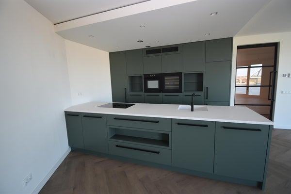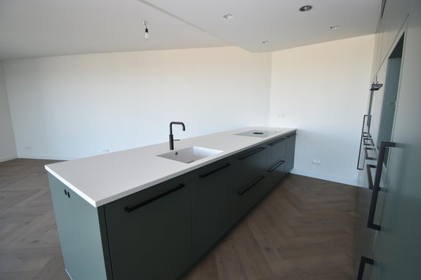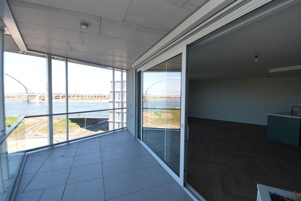 Het paradepaardje van dit appartement is toch wel de living met haar panoramische uitzicht over de rivier de Waal met zijn scheepvaart en de rust. De kamerhoge glazenschuifpui zorgt voor veel lichtinval in de kamer. Aan de living ligt ook een zeer ruim balkon waar je heerlijk in alle rust in de buitenlucht kan genieten van de prachtige omgeving. De open keuken mag extra in het zonnetje worden gezet worden. Deze tijdloze keuken is voorzien van een inductie kookplaat met Bora PURU, een vaatwasser, een combi-oven en een koelvriescombinatie van Bosch. De Quooker en de wijnklimaatkast van Le Chai maken het plaatje compleet.