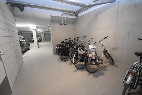 In de parkeergarage, gelegen onder het complex, heb je de beschikking over een eigen parkeerplaats met oplaadpunt voor een elektrische auto en een bergruimte voor bijvoorbeeld fietsen of andere spullen die je niet dagelijks gebruikt.