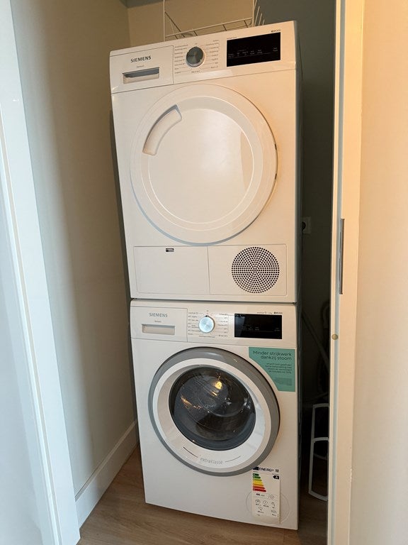 Luxe badkamer. Er is een gemeenschappelijke wasruimte met wasmachines en drogers.