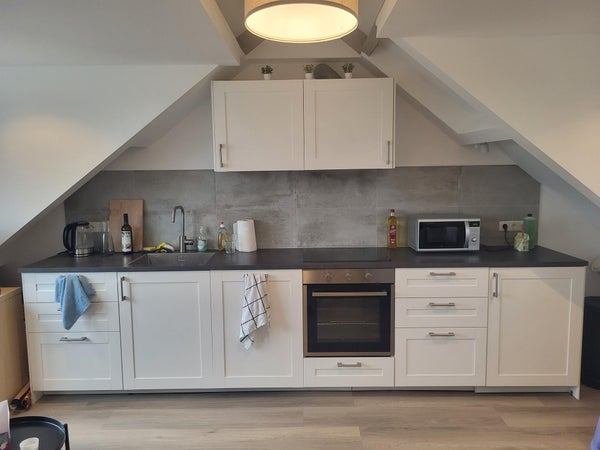 Per 1 januari a.s. beschikbaar. Een zolder appartement van ca. 35m2 met moderne keuken, badkamer, toilet en laminaten vloer.