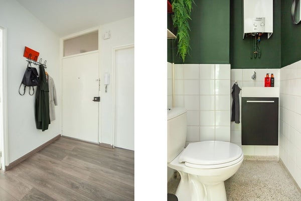 Voor de oplevering worden het separate toilet en de badkamer volledig vernieuwd. Het toilet wordt voorzien van nieuwe wand-en vloertegels, een hangend toilet en een nieuw fonteintje en kraan. De badkamer krijgt ook nieuwe wand-en vloertegels, een glazen douchewand, een designradiator en een grotere wastafel met wastafelmeubel en spiegel met verlichting,