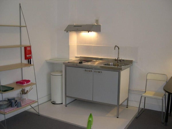 Woonkamer met keuken van 18m2 en een aparte slaapkamer van ongeveer 7m2.