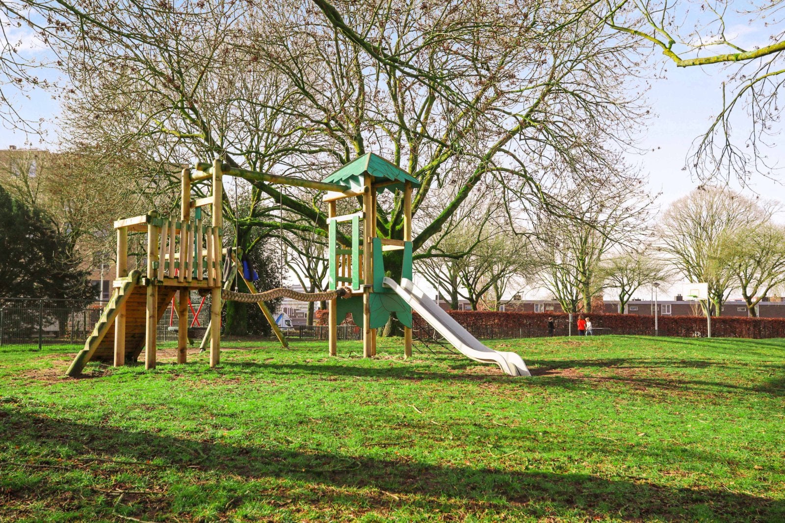 In de wijk Grootland in Nijmegen-Zuid vindt u een selectie van 104 appartementen variërend van 88 tot 105 m2, met vier topappartementen van 140 tot 143 m2. Deze appartementen liggen in een groene omgeving en zijn verdeeld over drie gebouwen, verbonden door een ondergrondse parkeergarage. Vijf van de appartementen hebben geen toegang tot de garage en beschikken enkel over een berging in het souterrain. De appartementen zijn bereikbaar via centrale ingangen en bieden de keuze uit zes typen, met één tot drie slaapkamers. Elk appartement is voorzien van een full-option keuken, een badkamer met douche, en een tweede toilet. Appartementen van type F en G hebben ook een bad. De verwarmingen zijn centraal geregeld, en de stookkosten zijn inbegrepen in de huurprijs.