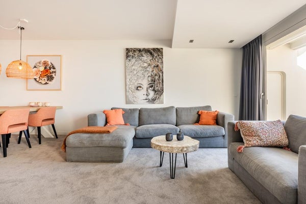Luxe keuken met kookeiland en o.a. voorzien van inductie kookplaat met ingebouwde afzuiger, vaatwasser, combi-oven, koel-vriescombinatie, Quooker, etc. L-vormige woonkamer met dubbele schuifpui naar het ruime zonnige terras van ca. 24 m2.