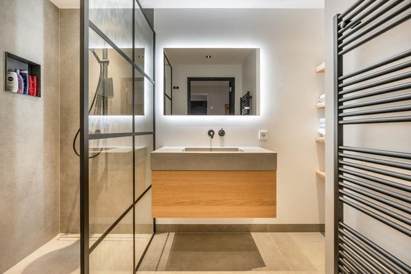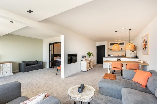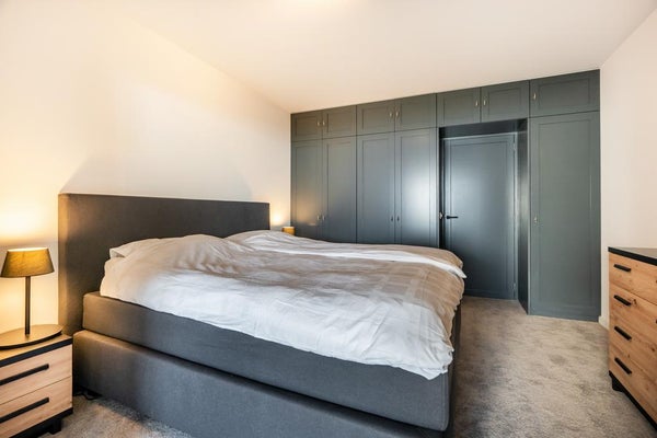 Entree, hal met videofooninstallatie en garderobe. Aparte toiletruimte met vrijdragend toilet en fontein. Badkamer met inloop (regen)douche en wastafelmeubel met spiegel en verlichting. Ruime slaapkamer met vaste kasten. 2e slaapkamer met stapelbed. Berging met wasmachine en droger.