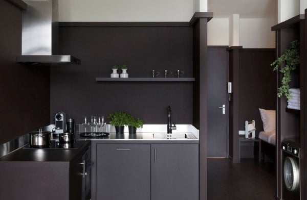 De studio appartementen zijn volledig ingericht en van alle gemakken voorzien. De keukens zijn volledig uitgerust met alles wat je nodig hebt om heerlijke maaltijden te bereiden. Je vindt hier een vaatwasmachine, inductiekookplaat, afzuigkap, koelkast met vriesvak en een combi oven/magnetron, evenals een wasmachine. Alles is aanwezig om jouw verblijf zo aangenaam mogelijk te maken. Daarnaast bieden we gratis wifi, een flatscreen tv met kabelzenders en strijkfaciliteiten. De badkamer is voorzien van wastafel, toilet en douche. In de slaapkamer staat een luxe boxspring en vanuit hier heb je bij de appartementen gelegen op de eerste verdieping direct toegang tot het gemeenschappelijk dakterras. Deze bevindt zich aan de voorzijde van het pand, waar je kunt genieten van het gezellige rumoer van de straat. De appartementen op de tweede verdieping hebben een ruime raampartij met een mooi uitzicht op het oude drop.