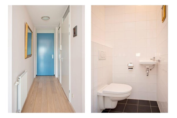 Het appartement beschikt over een zwevend toilet met een fonteintje.