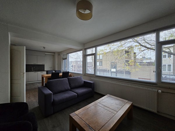 De woning beschikt over een ruime en lichte woonkamer met grote raampartijen, waardoor er volop daglicht binnenkomt. De open keuken is praktisch ingedeeld en voorzien van koken op gas en de nodige inbouwapparatuur, wat zorgt voor een fijne en efficiënte kookomgeving.
