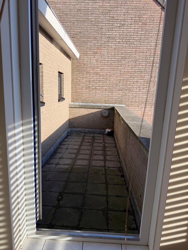 De woonkamer is ruim en heeft een balkon op het zuiden met uitzicht over het plein.