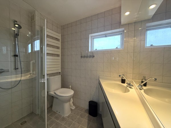 Ga je een etage hoger, dan kom je bij twee slaapkamers, de badkamer met inloopdouche, wastafel en toilet, plus een extra kamer waar de wasmachine en droger staan. De woning beschikt over meerdere verdiepingen, waardoor ieder gezinslid een eigen plekje krijgt om te relaxen. Op de bovenste etage is nog een grote slaapkamer.